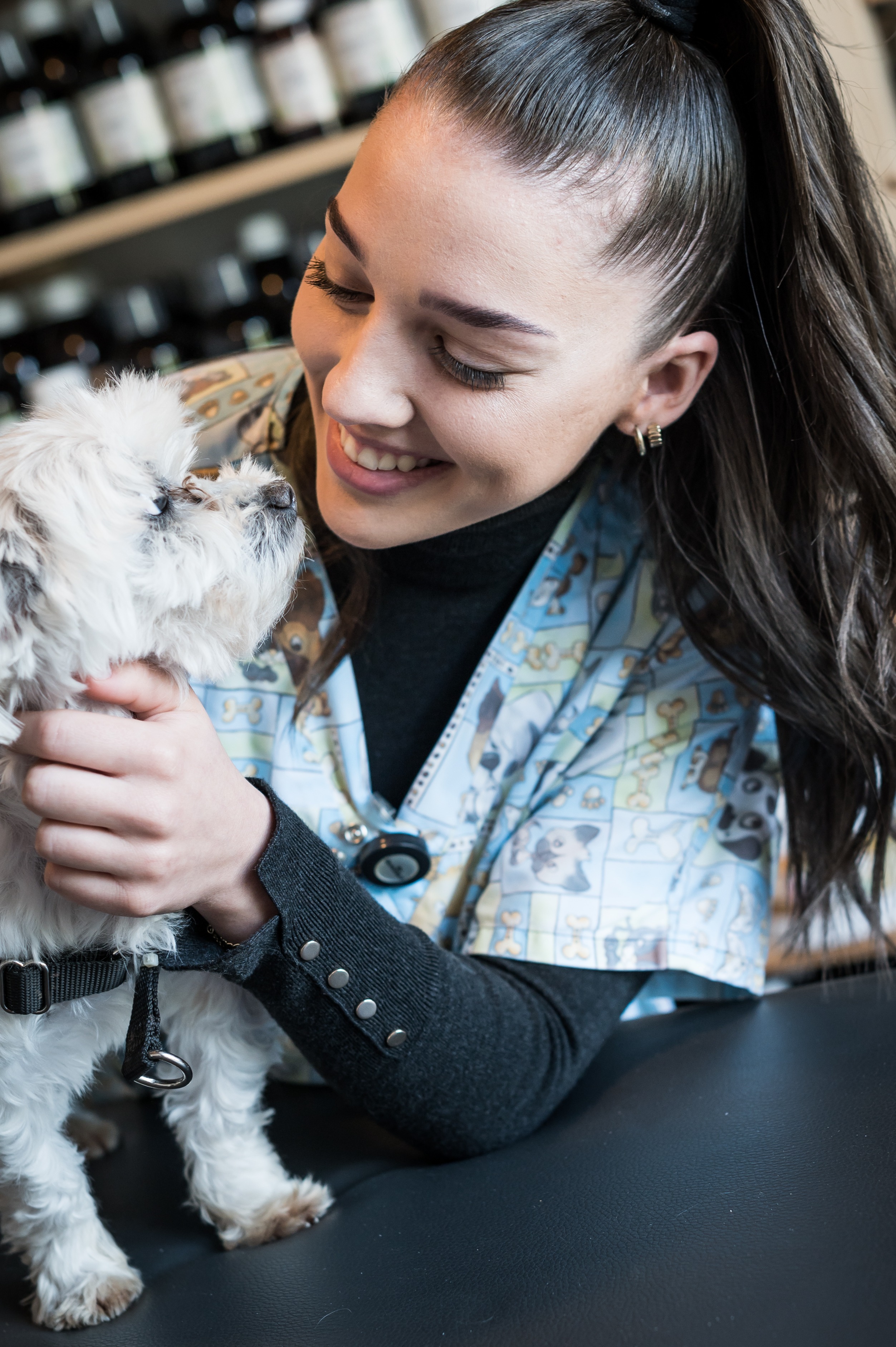 Je suis la première personne que vous rencontrerez au Centre Vétérinaire et c’est avec plaisir que je répondrais à vos questions. C’est moi qui vous fixe un rendez-vous pour une consultation et qui vous fait parvenir les rappels de vaccins. Je m’occupe aussi de la gestion de la communication via notamment notre page Facebook. Parfois vous m’apercevrez en consultation pour réaliser une contention (tenir votre animal lors d’un examen) ou pour aider à remplir des papiers. Le matin, j’installe confortablement vos compagnons lorsqu’ils viennent pour une chirurgie puis nous nous retrouvons plus tard pour les indications avant le retour à la maison. Au besoin, j’assiste le vétérinaire lors des examens complémentaires ou en chirurgie. Je veille sur vos loulous aussi bien dans la salle d’attente avec des gratouilles qu’en hospitalisation pour les câliner. À votre écoute, je vous conseillerais également sur l’alimentation et bien d’autres sujets.